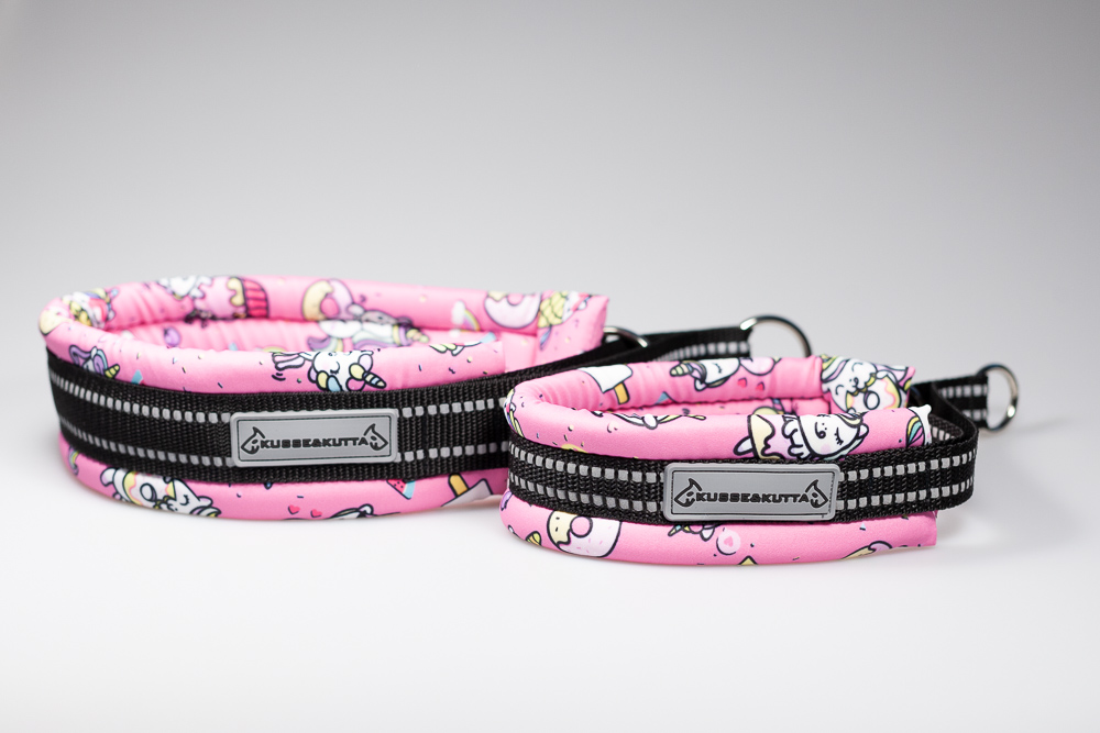 Puolikiristävä lycrapanta donitsiponit Kusse&Kutta on valmistettu laadukkaista ja kestävistä materiaaleista. Panta on valmistettu erittäin sileästä lycra-kankaasta, joka ei katko tai takuta koiran turkkia. Heijastinnauha lisää näkyvyyttä ja turvallisuutta pimeällä.